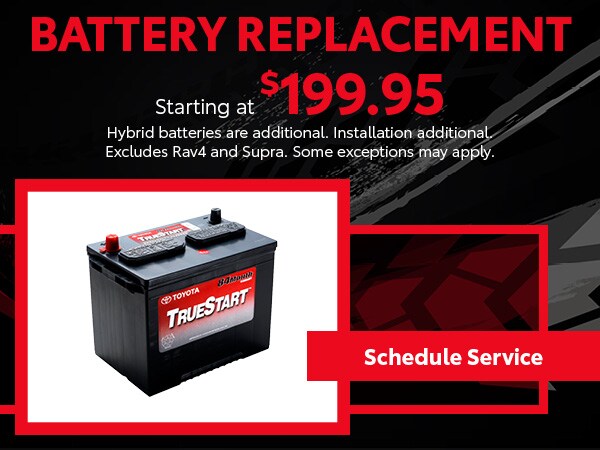 - Battery Service and Replacement: A faulty battery is always a hassle, but our dealership performs all battery services, from testing the charge to replacing Toyota batteries, at competitive rates.