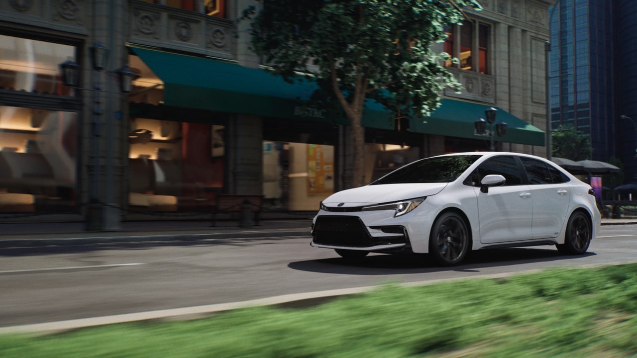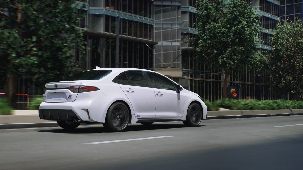The Corolla Hybrid boasts a sleek, aerodynamic exterior that turns heads wherever you go. Its sculpted body lines, bold front grille, and LED lighting create a modern and sophisticated look. Available 16-inch alloy wheels add a touch of sportiness to this already impressive hybrid sedan.