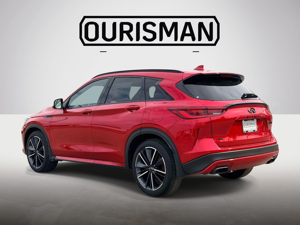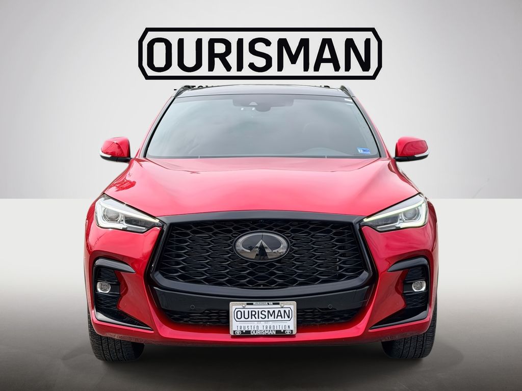 PANORAMIC ROOF / DUAL SUNROOFS / TWIN PANEL MOONROOF, POWER MOONROOF / SUNROOF / POWER TILT SLIDING ROOF, VOICE ACTIVATED NAVIGATION, NAVIGATION / GPS / NAV, BLIS / BLIND SPOT MONITORING / BLIND SIDE ALERT, DYNAMIC RADAR CRUISE CONTROL / ADAPTIVE CRUISE CONTROL / SMART CRUISE CONTROL, LANE DEPARTURE WARNING, LANE DEPARTURE ALERT / LANE KEEPING ALERT, LANE DEPARTURE w/ STEERING ASSIST, LANE DEPARTURE WARNING, REARVIEW CAMERA / BACK UP CAMERA / REVERSE CAMERA, REAR VIEW CAMERA W/DYNAMIC GUIDELINES, ANDROID AUTO & APPLE CARPLAY, HANDS FREE LIFTGATE / POWER LIFT GATE / AUTOMATIC LIFT GATE, LEATHER SEATS, HEATED & COOLED FRONT ROW SEATS, HEATED FRONT ROW SEATS, POWER WINDOWS & LOCKS, ALL WHEEL DRIVE / AWD, STEERING WHEEL AUDIO CONTROLS, CRUISE CONTROL, WIRELESS CHARGING, REMOTE START, REAR CROSS TRAFFIC ALERT, PUSH-BUTTON START, PREMIUM AUDIO SOUND SYSTEM, BLUETOOTH AUDIO STREAMING, BLUETOOTH & BLUETOOTH STREAMING, BLUETOOTH HANDS-FREE PHONE SYSTEM, ONE OWNER, DUAL ZONE A/C CONTROLS, BLUETOOTH, BACK UP / REVERSE SENSORS, BACK UP SENSORS, AUTOMATIC HIGH BEAMS, AUTO HIGH BEAMS, 12 Speakers, 4-Wheel Disc Brakes, 5.846 Axle Ratio, ABS brakes, Air Conditioning, Alloy wheels, AM/FM radio: SiriusXM, Auto High-beam Headlights, Automatic temperature control, Bose Premium Audio System, Brake assist, Bumpers: body-color, CD player, Climate Controlled Front Bucket Seats, Delay-off headlights, Electronic Stability Control, Exterior Parking Camera Rear, Four wheel independent suspension, Front Bucket Seats, Front Center Armrest, Front dual zone A/C, Front fog lights, Front reading lights, Fully automatic headlights, Heated door mirrors, Heated front seats, Heated steering wheel, Illuminated entry, Illuminated Kick Plates, Leather Shift Knob, Leather steering wheel, Literature Kit, Low tire pressure warning, Navigation System, Navigation system: INFINITI InTouch Navigation, Panic alarm, Passenger door bin, Power door mirrors, Power driver seat, Power Liftgate, Power moonroof, Power passenger seat, Power steering, Power windows, Radio data system, Rear reading lights, Rear seat center armrest, Rear window defroster, Rear window wiper, Remote keyless entry, Security system, Semi-Aniline Leather-Appointed Seat Trim, Speed control, Speed-sensing steering, Speed-Sensitive Wipers, Splash Guards (Set of 4), Split folding rear seat, Spoiler, Steering wheel mounted audio controls, Tilt steering wheel, Traction control, Trip computer, Turn signal indicator mirrors, Variably intermittent wipers, Ventilated front seats, Wheels: 20" Dark-Painted Machine-Finished Alloy. 2024 INFINITI QX50 SPORT AWD Dynamic Sunstone Red I4