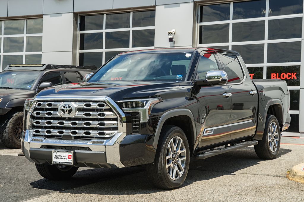 PANORAMIC ROOF / DUAL SUNROOFS / TWIN PANEL MOONROOF, POWER MOONROOF / SUNROOF / POWER TILT SLIDING ROOF, VOICE ACTIVATED NAVIGATION, NAVIGATION / GPS / NAV, BLIS / BLIND SPOT MONITORING / BLIND SIDE ALERT, DYNAMIC RADAR CRUISE CONTROL / ADAPTIVE CRUISE CONTROL / SMART CRUISE CONTROL, LANE DEPARTURE WARNING, LANE DEPARTURE ALERT / LANE KEEPING ALERT, LANE DEPARTURE w/ STEERING ASSIST, LANE DEPARTURE WARNING, REARVIEW CAMERA / BACK UP CAMERA / REVERSE CAMERA, REAR VIEW CAMERA W/DYNAMIC GUIDELINES, ANDROID AUTO & APPLE CARPLAY, LEATHER SEATS, HEATED & COOLED FRONT ROW SEATS, HEATED FRONT ROW SEATS, HEATED SECOND ROW SEATS, POWER WINDOWS & LOCKS, FOUR WHEEL DRIVE / 4WD / 4X4, STEERING WHEEL AUDIO CONTROLS, CRUISE CONTROL, WIRELESS CHARGING, REAR CROSS TRAFFIC ALERT, PUSH-BUTTON START, PREMIUM AUDIO SOUND SYSTEM, POWER TAILGATE LOCK, BLUETOOTH AUDIO STREAMING, BLUETOOTH & BLUETOOTH STREAMING, BLUETOOTH HANDS-FREE PHONE SYSTEM, ONE OWNER, HEATED STEERING WHEEL, DUAL ZONE A/C CONTROLS, BLUETOOTH, BACK UP / REVERSE SENSORS, BACK UP SENSORS, AUTOMATIC HIGH BEAMS, AUTO HIGH BEAMS, TOYOTA SAFETY SENSE, JBL PREMIUM SOUND SYSTEM***, 10-Way Pwr Adj Heated and Ventilated Front Seats, 12 Speakers, 1794 Grade Package, 3.31 Axle Ratio, 4-Wheel Disc Brakes, ABS brakes, Air Conditioning, Alloy wheels, AM/FM radio: SiriusXM, Apple CarPlay/Android Auto, Auto High-beam Headlights, Auto-dimming door mirrors, Auto-dimming Rear-View mirror, Automatic temperature control, Black Dual-Step Running Board (TMS), Blind Spot Monitor, Brake assist, Bumpers: body-color, Chrome Exhaust Tail Pipe & Diffuser, Chrome Plated Power Folding Outside Mirrors, Delay-off headlights, Electronic Stability Control, Front Bucket Seats, Front Center Armrest, Front dual zone A/C, Front fog lights, Front reading lights, Fully automatic headlights, Heated door mirrors, Heated front seats, Heated rear seats, Heated steering wheel, Illuminated entry, Leather Seat Trim, Leather Shift Knob, Low tire pressure warning, Multi-Terrain Back Monitor, Navigation System, Panic alarm, Panoramic View Back Monitor, Passenger door bin, Power door mirrors, Power driver seat, Power moonroof, Power passenger seat, Power steering, Power windows, Radio data system, Radio: Audio Multimedia System, Rain sensing wipers, Rear reading lights, Rear seat center armrest, Rear step bumper, Rear window defroster, Remote keyless entry, Safety Connect, Security system, Speed control, Speed-sensing steering, Split folding rear seat, Steering wheel memory, Steering wheel mounted audio controls, Tachometer, Tilt steering wheel, Traction control, Trip computer, Turn signal indicator mirrors, Variably intermittent wipers, Ventilated front seats, Ventilated rear seats, Voltmeter, Wheel Locks (TMS), Wheels: 20" Machined Finish Alloy. 2023 Toyota Tundra 1794 4WD Midnight Black Metallic 3.4L V6