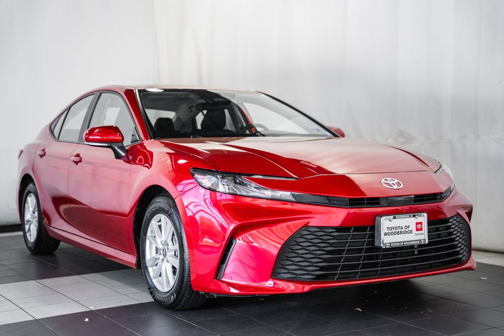 BLIS / BLIND SPOT MONITORING / BLIND SIDE ALERT, DYNAMIC RADAR CRUISE CONTROL / ADAPTIVE CRUISE CONTROL / SMART CRUISE CONTROL, LANE DEPARTURE WARNING, LANE DEPARTURE ALERT / LANE KEEPING ALERT, LANE DEPARTURE w/ STEERING ASSIST, LANE DEPARTURE WARNING, REARVIEW CAMERA / BACK UP CAMERA / REVERSE CAMERA, REAR VIEW CAMERA W/DYNAMIC GUIDELINES, ANDROID AUTO & APPLE CARPLAY, POWER WINDOWS & LOCKS, STEERING WHEEL AUDIO CONTROLS, CRUISE CONTROL, REAR CROSS TRAFFIC ALERT, PUSH-BUTTON START, BLUETOOTH AUDIO STREAMING, BLUETOOTH & BLUETOOTH STREAMING, BLUETOOTH HANDS-FREE PHONE SYSTEM, ONE OWNER, DUAL ZONE A/C CONTROLS, BLUETOOTH, AUTOMATIC HIGH BEAMS, AUTO HIGH BEAMS, TOYOTA SAFETY SENSE, WIRELESS ANDROID AUTO, WIRELESS APPLE CAR PLAY, 4-Wheel Disc Brakes, 6 Speakers, ABS brakes, Air Conditioning, Alloy wheels, AM/FM radio: SiriusXM, Apple CarPlay/Android Auto, Auto High-beam Headlights, Automatic temperature control, Brake assist, Bumpers: body-color, Delay-off headlights, Electronic Stability Control, Exterior Parking Camera Rear, Fabric Seat Trim, Four wheel independent suspension, Front Bucket Seats, Front Center Armrest, Front dual zone A/C, Front reading lights, Fully automatic headlights, Illuminated entry, Low tire pressure warning, Panic alarm, Passenger door bin, Power door mirrors, Power steering, Power windows, Radio data system, Radio: Toyota Audio Multimedia w/8" Touchscreen, Rear seat center armrest, Rear window defroster, Remote keyless entry, Security system, Speed control, Speed-sensing steering, Split folding rear seat, Steering wheel mounted audio controls, Tilt steering wheel, Traction control, Trip computer, Turn signal indicator mirrors, Variably intermittent wipers, Wheels: 16" Silver-Finished Alloy. 2025 Toyota Camry LE FWD Supersonic Red 2.5L 4-Cylinder 16V DOHC